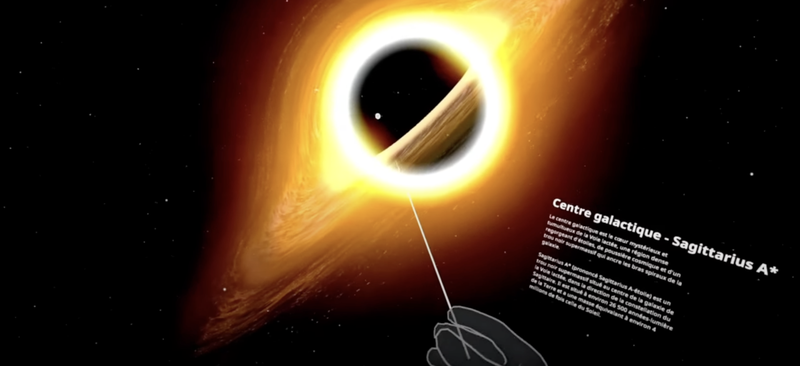 Grâce au suivi des mains (Hand Tracking) et aux fonctionnalités de passthrough, Cosmic XR transforme votre espace en un observatoire interactif. Touchez, saisissez, faites pivoter ou agrandissez des objets célestes avec des gestes naturels. L'application propose des scènes captivantes, allant de la toile cosmique aux galaxies, en passant par la Voie lactée, Andromède, le système solaire et même une plongée fascinante au cœur du trou noir Sagittarius A*, situé au centre de notre galaxie.