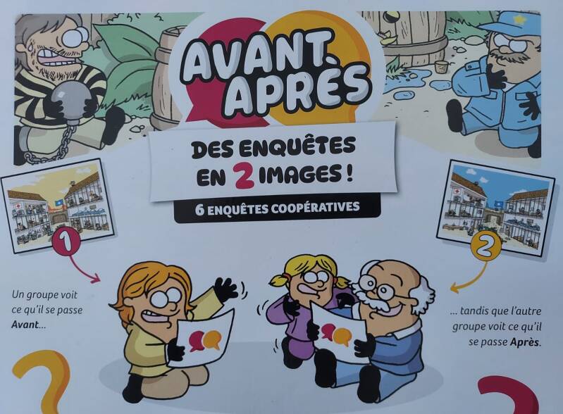 Chaque équipe recevra une image : l’une représentant ce qui se passe avant les faits, l’autre après. Ces images doivent rester confidentielles. Au début du jeu, vous ne saurez pas si vous avez l’illustration AVANT ou APRÈS les événements.