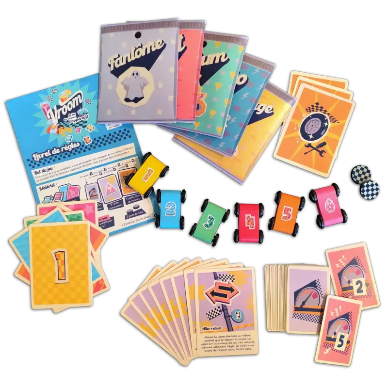 Dans ce jeu de course coopératif, vous devez arriver dans le bon ordre ! À chaque tour, les joueurs doivent avancer en fonction d’une carte Vitesse que les autres ne voient pas. À vous d’estimer jusqu’où pousser votre petite voiture…