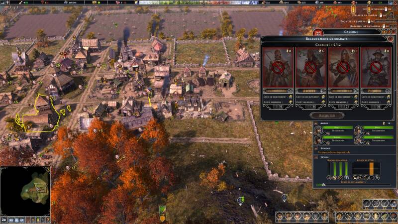 La gestion des ressources est particulièrement bien pensée, avec des entrepôts pour stocker les matières premières, des greniers pour les céréales et un cellier dédié à la conservation optimale des aliments. En parlant de nourriture, vos meilleurs alliés sont les cueilleurs, et l'interface du jeu vous permet de localiser facilement les différentes ressources. L'économie, quant à elle, est simple à gérer : il suffit d'installer des marchés à proximité des résidences pour générer de l'or, utilisé ensuite pour financer des services essentiels comme les médecins ou les soldats. De plus, les marchands itinérants peuvent constituer une précieuse source de ressources supplémentaires, notamment au début de la partie, lorsque votre industrie n'est pas encore pleinement développée.