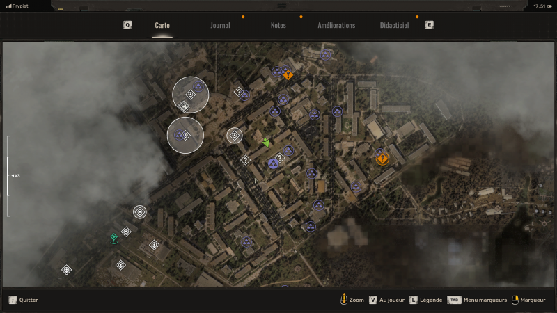 Il est important de garder à l’esprit que les armes et armures souffrent également des conditions difficiles de la zone. Traverser une anomalie thermique n'est pas sans conséquence pour votre équipement. Heureusement, de nombreuses bases, plus ou moins neutres, sont disséminées dans la région, où des techniciens peuvent remettre votre matériel en état et même l'améliorer, moyennant une rémunération. De plus, des marchands sont disponibles pour vous fournir du matériel plus puissant. N'oubliez pas de surveiller vos munitions ; tomber à court dans cette zone pourrait signer votre arrêt de mort. Fort heureusement, des munitions se trouvent en plusieurs endroits, y compris sur des corps. Même si ce n’est pas toujours le bon calibre, cela reste une bonne source de revenus. Dans la partie supérieure de votre écran, la boussole affiche de petites croix qui indiquent la direction des corps, qu'ils aient été éliminés par vous ou par d'autres dans la zone. N'oubliez pas de les fouiller : ils peuvent renfermer des objets précieux ou vous guider vers des caches contenant de l'équipement.