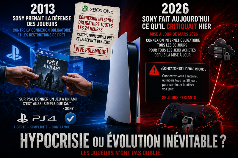 Treize ans plus tard, le contraste est frappant. Depuis une mise à jour déployée en mars 2026, Sony impose une vérification régulière des licences sur PlayStation 5 obligeant les joueurs à se connecter tous les trente jours pour continuer à accéder à certains jeux